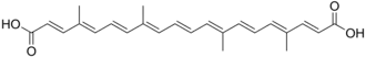 Bixin is an apocarotenoid found in the seeds of the achiote tree (Bixa orellana)[2] from which it derives its name. It is commonly extracted from the seeds to form annatto, a natural food coloring, containing about 5% pigments, of which 70–80% are bixin.[3]