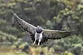 This is a huge eagle-like "buzzard" ("hawk" in American terminology). It has a total length of 62 to 76 cm (24 to 30 in) and a wingspan of 149 to 200 cm (4 ft 11 in to 6 ft 7 in).[4][5] In the nominate race, males averaged 2.13 kg (4.7 lb) and females averaged 2.75 kg (6.1 lb), with a range between both of 1.67 to 3.17 kg (3.7 to 7.0 lb).[6] In the linearly slightly smaller G. m. australis subspecies, a male weighed 1.7 kg (3.7 lb) and a female weighed 3.2 kg (7.1 lb), indicating the bulk of the two races is roughly the same.[7][8]