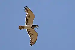 The black-chested snake eagle or black-breasted snake eagle (Circaetus pectoralis) is a large African bird of prey of the family Accipitridae. It resembles other snake eagles and was formerly considered conspecific with the short-toed and Beaudouin's snake eagles, to which it is closely related.[2][3]