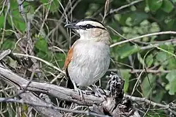 In 1760 the French zoologist Mathurin Jacques Brisson included a description of the black-crowned tchagra in his Ornithologie based on a specimen collected in Senegal. He used the French name La pie-griesche gris du Sénégal and the Latin Lanius Senegalensis cinereus.[2] Although Brisson coined Latin names, these do not conform to the binomial system and are not recognised by the International Commission on Zoological Nomenclature.[3] When in 1766 the Swedish naturalist Carl Linnaeus updated his Systema Naturae for the twelfth edition, he added 240 species that had been previously described by Brisson.[3] One of these was the black-crowned tchagra. Linnaeus included a brief description, coined the binomial name Lanius senegalus and cited Brisson's work.[4] The species is now placed in the genus Tchagra that was introduced by the French naturalist René Lesson in 1831.[5] Nine subspecies are recognised.[6]