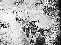 The Black Columns (Portuguese: Colunas Negras) were indigenous auxiliary troops from Timor who served alongside the Japanese during World War II, particularly during the Battle of Timor (1942–1945). The Portuguese, who had colonial influence in Timor, extended the term, Colunas Negras, to encompass all Timorese collaborators who worked with the Japanese during the occupation or who were hostile to the Portuguese.[1]: 9 These Timorese soldiers were trained by the Japanese and referred to as Heiho (兵補), a term used by the Japanese across the Malay Archipelago for local auxiliary forces. From the Japanese perspective, there were only a handful of Timorese soldiers trained by them who were under their command.[1]: 10