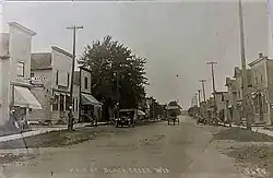 After the arrival of the Green Bay and Lake Pepin Railroad in 1871, the small lumbering settlement soon developed into a trade and shipping center for local farm and dairy products with the establishment of Black Creek Creamery in 1894 and Borden's Condensery in 1917.[13][14]
