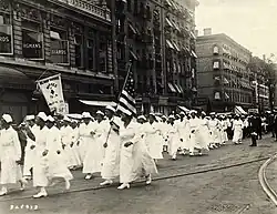 ![]() 1 August 1922, Manhattan, New York – "Black Cross Nurses in the giant parade through Harlem which today opened the thirty-day annual world convention of the Universal Negro Improvement Association (UNIA)" | |