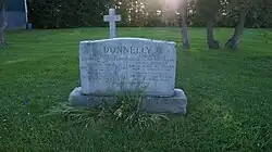 The publication of Thomas Kelley's The Black Donnellys in 1954 generated much interest in the case. The family tombstone, with the inscription "murdered" was the focus of curiosity and vandalism. Public access to the St. Patrick's Cemetery was denied. Remaining descendants of Donnelly family eventually chose to have the original tombstone replaced.[56]