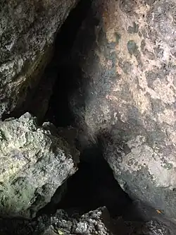 The cave is a solutional cave.[7] The main entrance of the cave has collapsed leaving only one narrow passage,[7] which is long, narrow, dark, and very damp.[2]