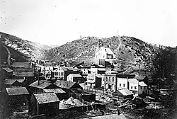 In May 1859 the discovery of gold in Gregory Gulch by its namesake, John H. Gregory, brought thousands of prospectors and miners into the area, combing the hills for more gold veins. The Bobtail lode was discovered the following month.[10] The free Territory of Colorado was organized on February 28, 1861.[11] The Black Hawk Point, Colorado Territory, post office opened on December 6, 1862.[12] Hardrock mining boomed for a few years, but then declined in the mid-1860s as the miners exhausted the shallow parts of the veins that contained free gold and found that their amalgamation mills could not recover gold from the deeper sulfide ores.[13]