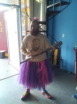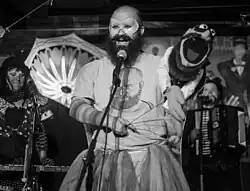 Black Scorpion (born August 26, 1979, Austin, Texas) is the pseudonym of Jason Black,[1] an American writer, director and performer known mostly for his contribution to the revival of modern freak show and sideshow arts. Known for his bizarre and surreal stage performances, multi-colored self-designed bandit mask and shoes, as well as his "trademark" claws, also called ectrodactyly[2] or "lobster claw syndrome". His feet are like his hands, three toes to a foot.