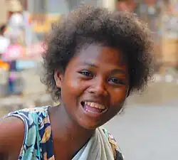 The Siddi are an ethnic group inhabiting India and Pakistan. Members are descended from the Bantu peoples of Southeast Africa. Some were merchants, sailors, indentured servants, slaves or mercenaries. The Siddi population is currently estimated at 270,000–350,000 individuals, living mostly in Karnataka, Gujarat, and Hyderabad in India and Makran and Karachi in Pakistan.[60] In the Makran strip of the Sindh and Balochistan provinces in southwestern Pakistan, these Bantu descendants are known as the Makrani.[61] There was a brief "Black Power" movement in Sindh in the 1960s and many Siddi are proud of and celebrate their African ancestry.[62][63]