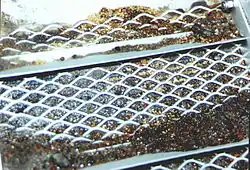 Black sands and gold in sluicebox, Blue Ribbon Mine, Alaska