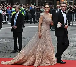 Other fashionable evening attire may be worn. Unlike the men's standard, the specifics of black tie for women are linked to whatever evening wear is currently in fashion.[72] Today ladies' dress for black tie occasions covers a much wider level of formality ranging from just below the white tie standard[73] to something more informal such as a little black dress. Specifically it can also include:
