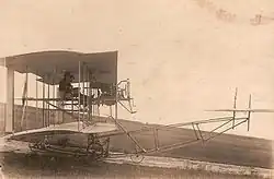 | Harold Blackburn (left) at the controls of the Blackburn-Walker biplane in its original configuration. | |