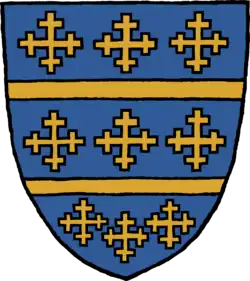 Blackham of London Coat of Arms; Azure, two bars between nine cross crosslets. 3. 3. 3. Or. [1]