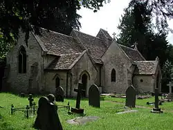 The church, which probably dates from the 13th century, is a small rubble building with a west bellcote. In the chancel two small windows are 13th century and Orbach states that two triangular-headed windows have Anglo-Saxon monolith surrounds. The two-light east window is 14th century and in that century the chancel roof was replaced and the nave rebuilt; these roofs are still in place.[22][14][23]