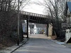 The Blackstone Manufacturing Company Historic District encompasses the "New City" or "High Rocks" area of Blackstone, Massachusetts, an industrial village associated with the Blackstone Manufacturing Company, which began operations in 1809. It includes an area roughly surrounding Butler, Canal, Church, County, Ives, Main, Mendon, Old Mendon, and School Streets. The district includes a wide variety of worker housing, as well as a granite storehouse, the only surviving company structure.[2] The district was added to the National Register of Historic Places in 1995.[1]