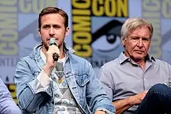 Harrison Ford and Ryan Gosling were Blade Runner 2049's first significant casting choices.[36][37] Gossip about Ford's participation had been circulating in the media since the project's conception, claims which the producers initially denied,[29][30] having only approached the actor for a part in 2014.[38] Alcon did not publicly announce their signing until the following year.[36] Ford had expressed interest in reprising his role in past interviews and was enthusiastic about the Blade Runner 2049 script.[38][39] The working conditions on set was another aspect of the production Ford was pleased with,[40] in contrast to the stressful shooting environment endured on Blade Runner.[23][41] Ford stated the thirty five-year passage of time, plus the synthesis of a new story with Deckard's already-established backstory, lent context necessary to playing his aged character.[41] Edward James Olmos, the only other returning Blade Runner actor, appears in a supporting part which pivots the main story.[42]