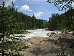 Blaeberry Falls is on the lower reaches of the river, approximately 7 kilometres (4 mi) up from its confluence with the Columbia.