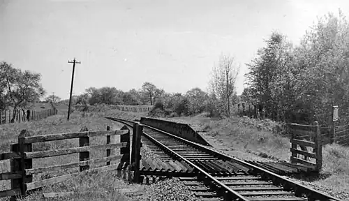 The branch was incorporated into the Great Western Railway during the Grouping of 1923, passing on to the Western Region of British Railways on nationalisation in 1948. Passenger services were discontinued in 1951, general freight in 1963 and milk traffic in 1973.[3] The single platform does not survive; like most of the others it was built from wooden railway sleepers.
