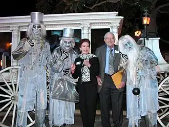![]() Blaine Gibson and Harriet Burns with the ghosts from The Haunted Mansion at Disneyland Park, 2008. | |