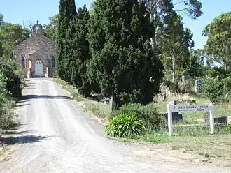 St James Church of England, in the town of Blakiston, is the sixth oldest Anglican Church in South Australia.[4] The 10 acres (4.0 ha) plot of the church, cemetery and rectory was bought by George Morphett and Samuel Stocks from McFarlane in 1843 and was given for the building of the church in May 1846. The parsonage was completed, and occupied by the Rev. James Pollitt, in late 1846 and completion of the church building was promised for the following year.[5] Sentence of consecration was pronounced and the church consecrated by the Lord Bishop of Adelaide on 28 April 1848.