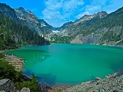 Blanca Lake is located in the Henry M. Jackson Wilderness Area in the Cascade Mountains of the U.S. state of Washington.