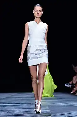 ![]() Blanca Padilla walking the runway for J. Mendel in 2015 | |