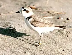 The wetlands is one of the most important areas for birds in Colorado since it provides habitat for migrating waterbirds or shorebirds. It hosts thirteen threatened, endangered and sensitive species.[4] The bald eagle and the peregrine falcon use the wetlands. The snowy plover and the white-faced ibis have been documented as nesting. Other Species of Management Priority that have been documented are American bittern, avocet, common yellowthroat, eared grebe, Forster's tern, greater sandhill crane, hen harrier, Savannah sparrow, snowy egret, sora rail, western grebe and yellow-headed blackbird.[3] Shorebirds such as gulls, sandpipers and pelicans are at home in the salty environment, as well as 158 other species.[1] There is a breeding population of snowy plover.[9] The wetlands is a duck breeding concentration area, with mallards by far the most common, but good numbers of pintail and green-winged teal also visiting.[10]