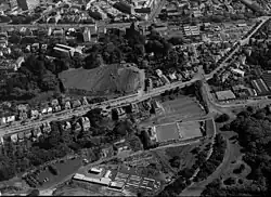 The marshiness of the ground was, however, still a major problem,[2] and could not be easily remedied. The ground was located in a low-lying basin with considerable run-off from the surrounding hills. The situation was not helped by the AFA's decision to offer a 30-year sub-lease of the ground during football's off-season to another group, the Stadium Company. This group began to run cycling competitions at the ground, adding to the disrepair of the surface. Despite legal wrangles between the AFA and the Stadium Company, in which the AFA tried to terminate the sub-lease, the ground deterioration continued, with cycling,[3] and later speedway[4] still being run at the park. Other sports played at the park included softball,[5] and the ground was the home of the Grafton Cricket Club.