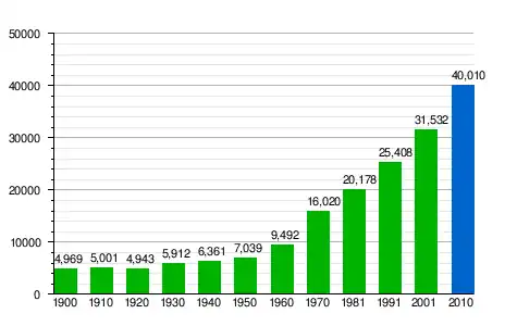 | demographic vertical bar chart of between 1900 and 2010 |