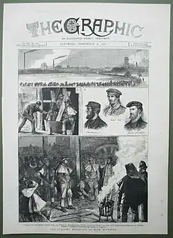 The Blantyre mining disaster, which happened on the morning of 22 October 1877, in Blantyre, Scotland, was Scotland's worst ever mining accident.[3][4] Pits No. 2 and No. 3 of William Dixon's Blantyre Colliery were the site of an explosion which killed 207 miners, possibly more,[5] with the youngest being a boy of 11.[6][7] It was known that firedamp was present in the pit and it is likely that this was ignited by a naked flame. The accident left 92 widows and 250 fatherless children.[7]