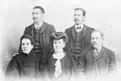It is unlikely that Blas received education going beyond the basic primary level, and from his teen years in the 1860s he started practicing as an apprentice in stonemasonry. In 1876, he married Gregoria Celayeta Palacios (1846-1922),[10] daughter to an indiano who returned from Cuba, but who originated from the Navarrese Bértiz-Arana region.[11] The couple had 3 children, Luis, Víctor and Asunción Morte Celayeta; all were also Carlists[12] and in 1936, Víctor represented Tudela in the Carlist Navarrese wartime executive.[13] Their grandsons Blas and Javier Morte Francés served as requetés;[14] Blas recognized Don Juan as the Carlist king in 1957, served as consejero foral[15] and co-founded Alianza Foral in the 1970s;[16] Javier was honorary president of CTC in the 1990s.[17] Great-grandchildren from the Abascal Morte family[18] are active in the media industry;[19] among descendants from the Guelbenzu Morte family[20] Ignacio is a painter,[21] while José[22] and Ricardo[23] are recognized wine business entrepreneurs and authors.