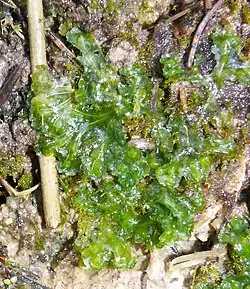 Blasiaceae is a family of liverworts with only two species: Blasia pusilla (a circumboreal species) and Cavicularia densa (found only in Japan). The family has traditionally been classified among the Metzgeriales, but molecular cladistics suggests a placement at the base of the Marchantiopsida.[2]