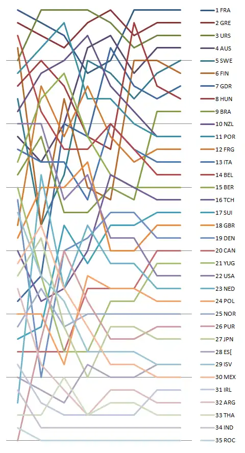 - ^ The 1972 Olympic scoring system was used.