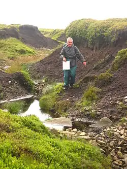Bleaklow is part of the National Trust's High Peak Estate. There has been considerable investment of resources in recent years to block many of the eroded peat gulleys as part of major schemes to re-wet and restore healthy Sphagnum moss communities which are essential for peat formation, carbon capture, and reduction in dissolved carbon which contaminates water supplies. Much of this work has been coordinated by the Moors for the Future Partnership, funded by EU LIFE+ programme between 2010 and 2015. This involved laying 52 kilometres (32 mi) of geotextiles to stabilise eroded peat, creating 4,000 mini-dams to retain water, introducing 150,000 moorland plants and spreading 807 million Sphagnum fragments across the whole Bleaklow Project site.[3]