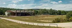 Currently, the site is 10 km from Sarreguemines,[B 1] 75 km east of Metz, and 15 km from Saarbrücken[F 1] and it is dominated by the Homerich hill.[F 1]