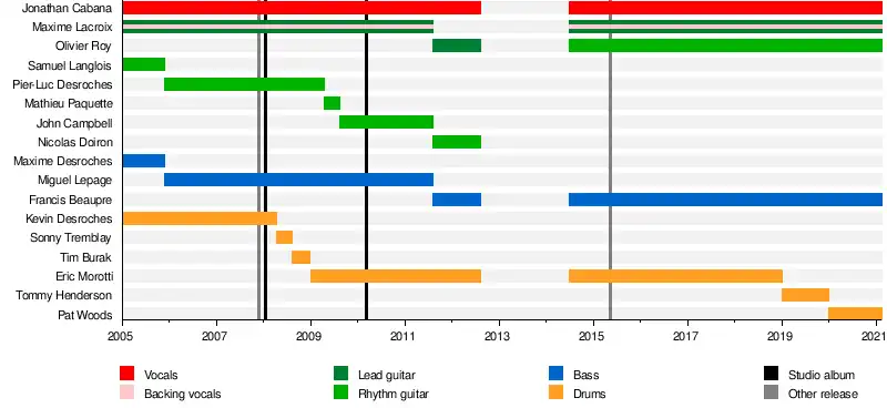 - Olivier Roy – rhythm guitar (2014–present), lead guitar (2011–2012)
