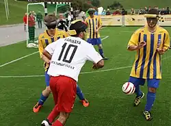 Football 5-a-side,[1] more commonly known as blind football or blind soccer, is a variation of association football designed for players who are blind or visually impaired. It is currently a Paralympic sport, and the International Blind Sports Association (IBSA) also organizes a World Blind Football Championships.[2]