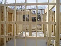 Blocking may also provide spacers or attachment points between adjoining stud walls, for example, where an interior and exterior wall meets, or at a corner where techniques such as the "three-stud corner with blocking" are used.[2]