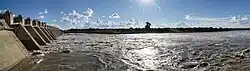 Bloemhof Dam is a dam in South Africa. It was originally known as the Oppermansdrif Dam when under construction during the late 1960s. It is located at the confluence of the Vaal River and the Vet River, on the border between the North West and Free State provinces. The dam wall has a total length of 4,270 metres (14,010 ft) The reservoir is very shallow, and therefore needs a large area to mean anything for water storage. The area around the reservoir (dam), has been a protected area, but because it lies on the border between provinces, these became two separate nature reserves. On the North West Province side lies the Bloemhof Dam Nature Reserve, on the Free State side is the Sandveld Nature Reserve.
