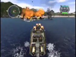 - Speedboat: small, fast boat with light weaponry. This is the boat given to the player in the first chapter of Story Mode. Its armament usually consists of four chain guns or auto-cannons, but later adds a rocket launcher. The boat is completely stripped of all armaments for one special mission involving a time trial-style race. In one special mission later in the game it is armed with the Stinger, an extremely powerful, but short-ranged electrical weapon.
