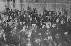 From the start of the new Socialist Republic of Macedonia, accusations surfaced that new authorities were involved in retribution against people who did not support the formation of the new ethnic Macedonian identity.[6] To wipe out the Bulgarophile sentiments of parts of the local population, the Yugoslav communists started a process of nation-building.[7] Bulgarian sources put the number of dead "traitors" and "collaborationists" due to organized killings of Bulgarians during Bloody Christmas and afterwards at around 1,200.[8] According to Bulgarian historian Dobrin Michev the idea was to weaken the Bulgarian intelligentsia in Macedonia, to eradicate the Bulgarian self-identification of parts of the population, and to speed-up the process of Macedonisation.[9] At the end of 1944, a law was passed for the protection of the Macedonian national honour, which persecuted people with a Bulgarian identity, pro-Bulgarian views, collaborationists or those who wanted more independence from Yugoslavia. A special court was also set up between April and August 1945 to implement the law.[10][11]