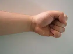 Bloody knuckles is a game in which each player makes a fist with the thumb wrapped around the other fingers. Then each fist punches the other's fist. Players who flinch are out of the game. Whoever lasts the longest before quitting wins the game.[1] The game is played until someone's knuckles are bleeding or they quit due to excessive pain.[2] Variations include simultaneous or alternate punching, and games in which the strike is the loser's punishment/winner's privilege. In the first two ways of playing the game, violence, though essentially consensual, is inherent, not a risk. Almost all ways of playing are dangerous, carrying the risk of injury, scarring, and damage to one's bones and hand. The point is to make them bleed.