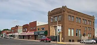 The Blooming Prairie Commercial Historic District is a designation applied to the historic downtown of Blooming Prairie, Minnesota, United States. It comprises 20 contributing properties built between 1893 and 1932.[2] It was listed as a historic district on the National Register of Historic Places in 1994 for having local significance in the theme of commerce.[3] It was nominated for being an unusually intact business district of an agricultural trade center on the Chicago, Milwaukee, and St. Paul Railroad.[2]