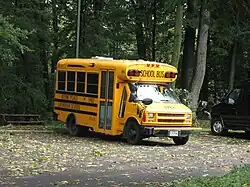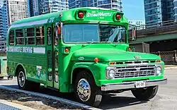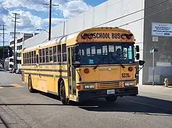 In another version, when showing a blue and yellow demonstrator unit to school officials, Luce overheard the positive reception of school children who had seen the bus, who nicknamed it "a pretty blue bird", and the name was chosen for the company.[5] Conversely, since the end of the 1930s, yellow would become the exterior color associated with American-manufactured school buses.