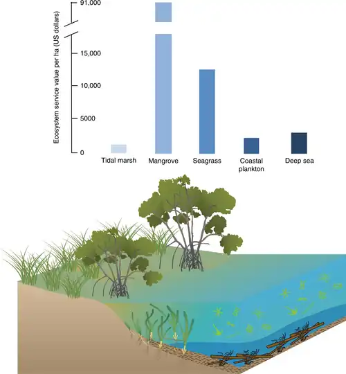 - ^ Huxham, M.; Whitlock, D.; Githaiga, M.; Dencer-Brown, A. (2018). "Carbon in the Coastal Seascape: How Interactions Between Mangrove Forests, Seagrass Meadows and Tidal Marshes Influence Carbon Storage". Current Forestry Reports. 4 (2): 101–110. Bibcode:2018CForR...4..101H. doi:10.1007/s40725-018-0077-4. S2CID 135243725.
