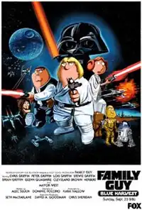 "Blue Harvest" is the hour-long season premiere of the sixth season of the American animated television series Family Guy, and the first part of the series' Laugh It Up, Fuzzball trilogy. It originally aired on Fox in the United States on September 23, 2007. The episode is a retelling and parody of the 1977 blockbuster film Star Wars, recasting the show's characters as Star Wars characters, created with permission from Lucasfilm on the condition that the characters look exactly as they do in the movies. The plot follows Peter as he retells the story of Star Wars while the electricity is out in their house.