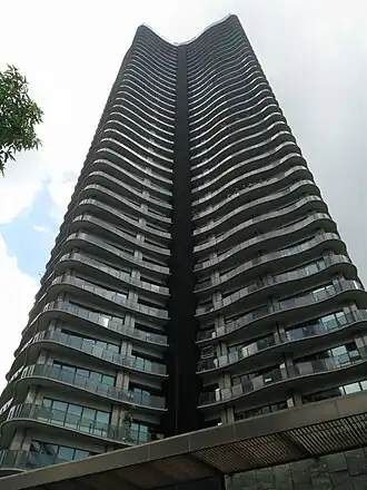 The Blue Ocean (Chinese: 藍海; pinyin: Lán Hǎi) is a residential skyscraper located in Tamsui District, New Taipei, Taiwan. Construction began in 2007 and it was completed in 2010. Designed by the Taiwanese architect C.Y. Lee & Partners, the height of the building is 150 m (490 ft), and it comprises 38 floors above ground, as well as three basement levels.[1][2][3] It was the tallest building in Tamsui when completed until it was surpassed by The Crystal Plaza in 2013. The building offers 180 apartment units, with facilities including a banquet hall, two swimming pools and a fitness center for the residents.[4][5][6]