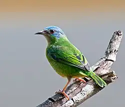 In 1760, the French zoologist Mathurin Jacques Brisson included a description of the blue dacnis in his Ornithologie based on a specimen collected in Cayenne in French Guiana. He used the French name Le Pepit bleu de Cayenne and the Latin name Sylvia cayanensis caerulea.[2] Although Brisson coined Latin names, these do not conform to the binomial system and are not recognised by the International Commission on Zoological Nomenclature.[3] When in 1766 the Swedish naturalist Carl Linnaeus updated his Systema Naturae for the twelfth edition he added 240 species that had been previously described by Brisson.[3] One of these was the blue dacnis. Linnaeus included a terse description, coined the binomial name Motacilla cayana and cited Brisson's work.[4] The specific name cayana is from Cayenne.[5] This species is now placed in the genus Dacnis that was introduced in 1816 by the French naturalist Georges Cuvier with the blue dacnis as the type species.[6][7]