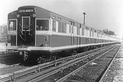 The Bluebird, formally dubbed Compartment Car by its purchaser, the Brooklyn–Manhattan Transit Corporation (BMT), was an advanced design PCC streetcar-derived subway and elevated railway car built by the Clark Equipment Company from 1938 to 1940[1] and used on the New York City Subway system from 1939 to 1955. A total of six units were built, with one prototype and five production units. They were among the last cars to be ordered by the BMT before the city takeover in 1940.