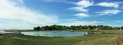 ![]() The mouth of the Bluefish River (left) seen from the shore of Duxbury Bay | |