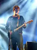 The Great Escape, which Albarn told the public was the last instalment in the band's Life Trilogy, was released in September 1995 to ecstatic reviews.[43] The NME hailed it as "spectacularly accomplished, sumptuous, heart-stopping and inspirational",[44] while Mojo argued "Blur are the very best that '95 Britpop has to offer and this is a most gong-worthy sound, complete with head-slicing guitars, catchy tunes and very funny words".[45] Entering the UK charts at number one,[46] the album sold nearly half a million copies in its first month of sale.[47] However, opinion quickly changed and Blur found themselves largely out of favour with the media once again. Following the worldwide success of Oasis' (What's the Story) Morning Glory? (which went quadruple platinum in the United States), the media quipped "[Blur] wound up winning the battle but losing the war."[48] Blur became perceived as an "inauthentic middle class pop band" in comparison to the "working class heroes" Oasis, which Albarn said made him feel "stupid and confused".[41] Alex James later summarised, "After being the People's Hero, Damon was the People's Prick for a short period ... basically, he was a loser – very publicly."[49]